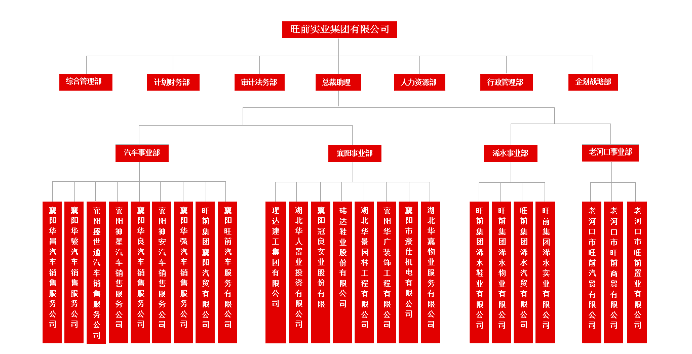 旺前實(shí)業(yè)立足襄樊、放眼中國(guó)、面向世界,秉承創(chuàng)新、開拓、拼搏、奮進(jìn)的企業(yè)精神,以品牌汽車銷售服務(wù)為基礎(chǔ),以賓館餐飲娛樂為支柱,以房地產(chǎn)開發(fā)為龍頭,多元化全方位的發(fā)展。主要經(jīng)營(yíng):品牌汽車銷售及售后服務(wù)、汽車配件制造及銷售、舊車交易、物流、房地產(chǎn)開發(fā)、房屋租賃、物業(yè)管理、房屋租賃、賓館、飲食娛樂、酒店管理、廣告策劃、投資擔(dān)保、建筑安裝、鋼材、建材等業(yè)務(wù)。